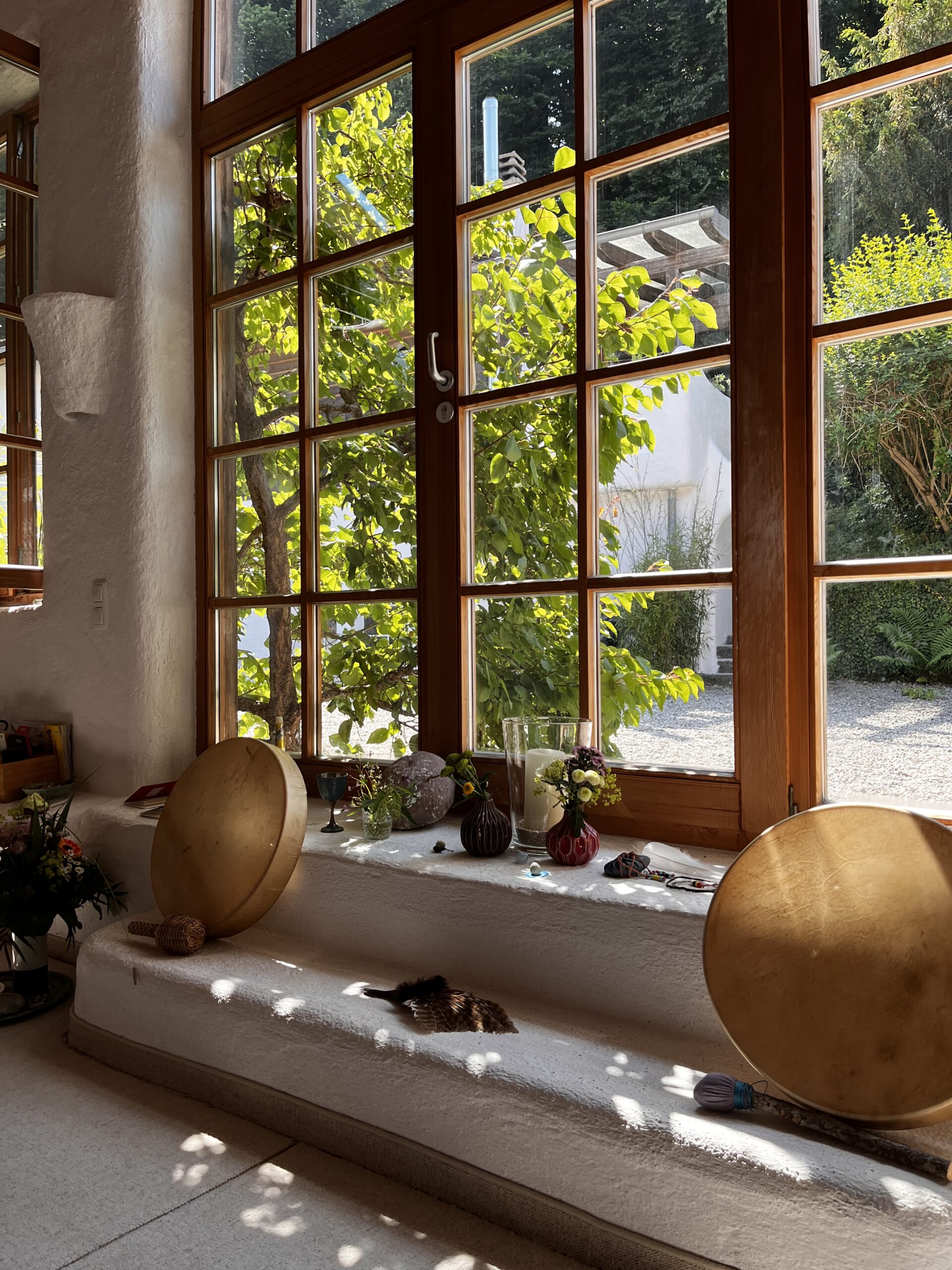 Ein Ort, der von Natur, Ruhe und stilvoller Schlichtheit geprägt. Hier kann sich dein Nervensystem beruhigen, deine Präsenz und Wahrnehmung vertiefen. Das unterstützt unsere Arbeit so ungemein.